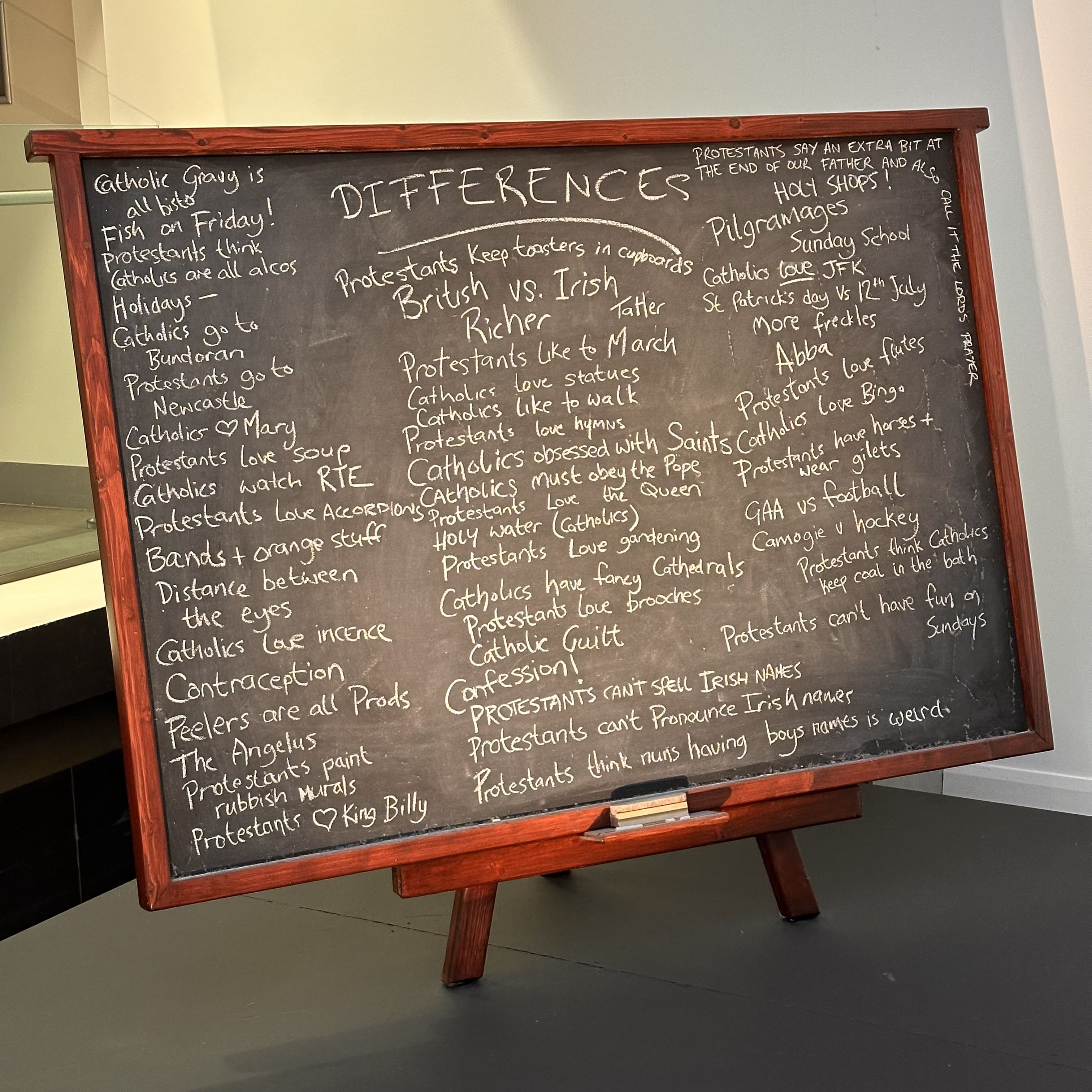 Ces deux cathédrales sont fascinantes dans leur contraste : la cathédrale Sainte-Anne, anglicane, avec son style roman et ses magnifiques vitraux, et la cathédrale Saint-Pierre, catholique, riche en détails et en symboles. Elles reflètent les diverses facettes de la culture de Belfast, la spiritualité sous ses multiples formes, et l’importance de la foi pour les habitants de cette ville.