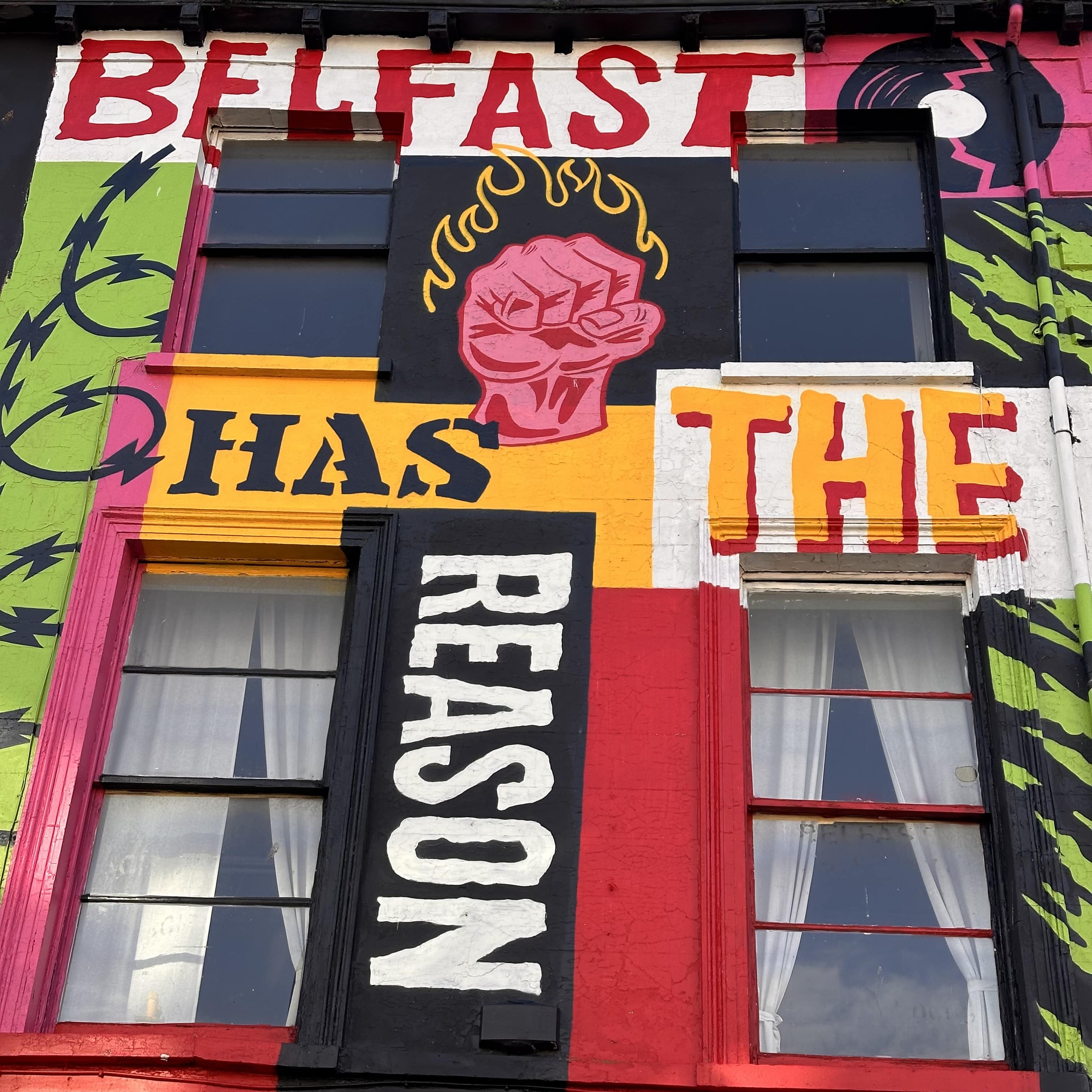 Graffiti, pochoir, sticker, mosaïque, tape art…l’art urbain, dans la capitale de l’Irlande du Nord permet aux artistes de rue d’hier et d’aujourd’hui d’exprimer leurs émotions et revendications à travers des mots et des images percutantes.