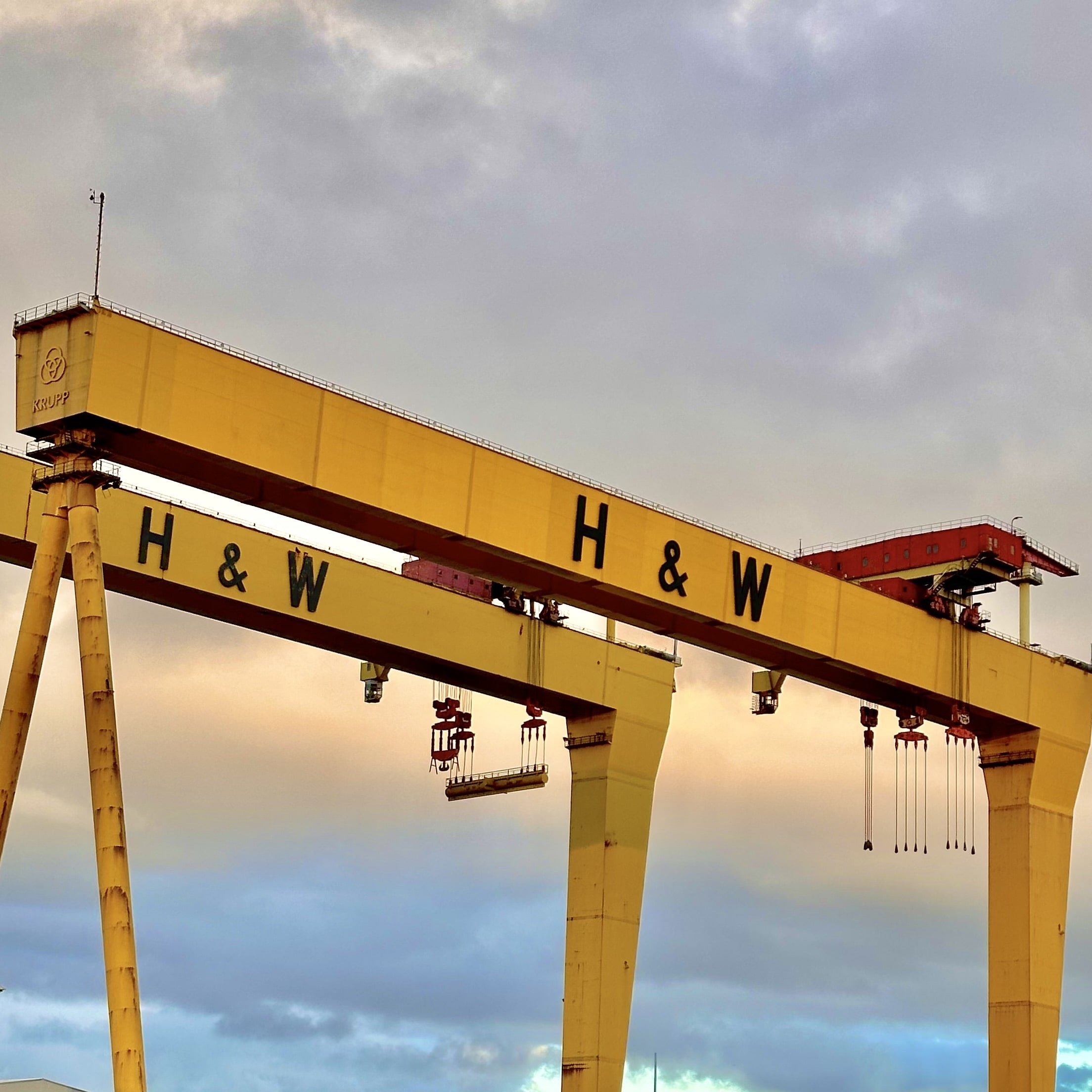 Impossible de parler de Belfast sans évoquer les célèbres grues jaunes de Harland & Wolff, surnommées « Samson » et « Goliath ». Ces imposantes structures, qui dominent le paysage du port de Belfast, sont les témoins muets de la riche histoire industrielle de la ville. Construites dans les années 1960 et 1970, ces deux grues ont été essentielles à l’essor de l’industrie navale, notamment à la construction du Titanic. Aujourd’hui, elles sont devenues des emblèmes iconiques de Belfast, représentant à la fois son passé prospère et sa capacité à se réinventer. En les contemplant, j’ai ressenti une certaine admiration pour cette ville qui porte fièrement les symboles de son histoire, tout en regardant résolument vers l’avenir.