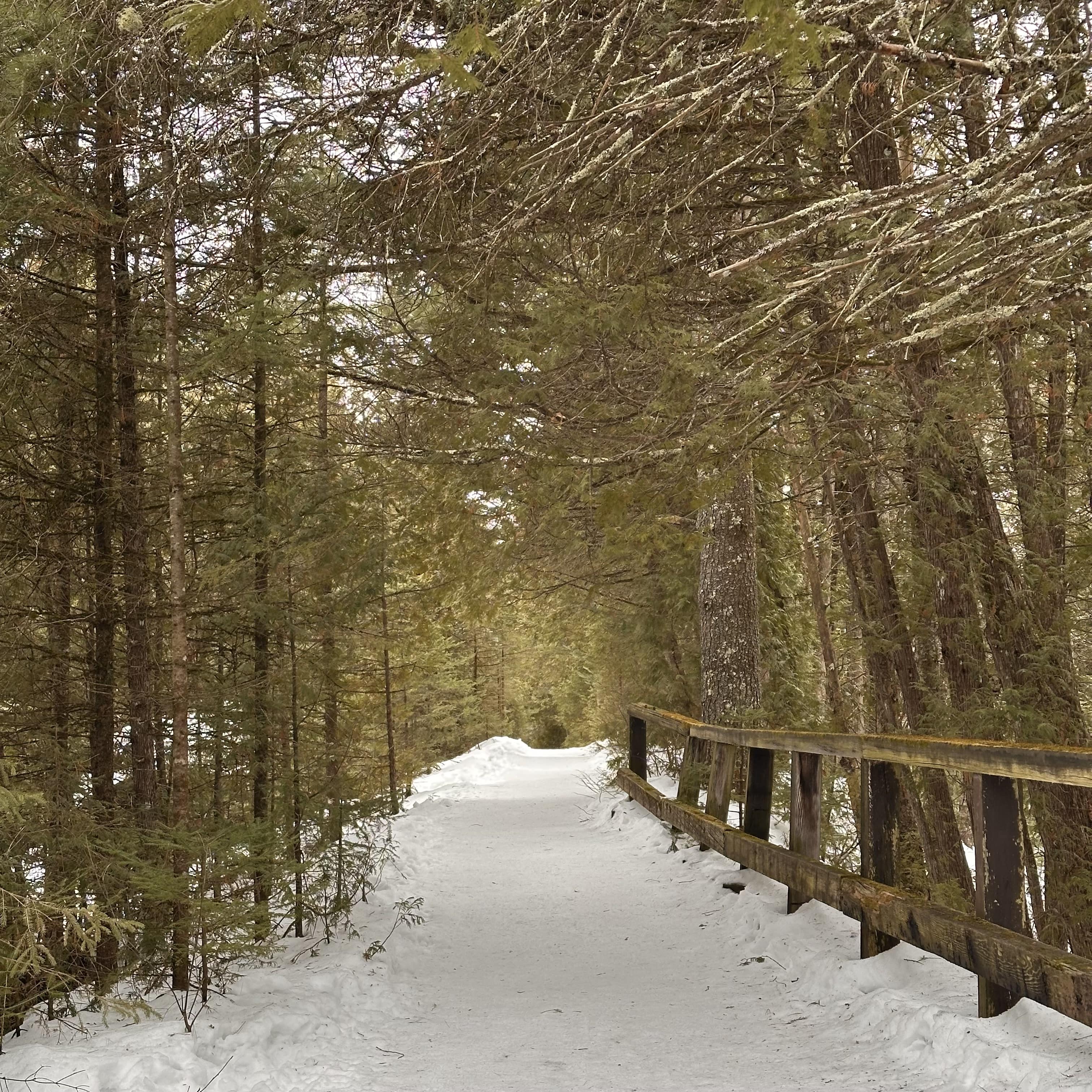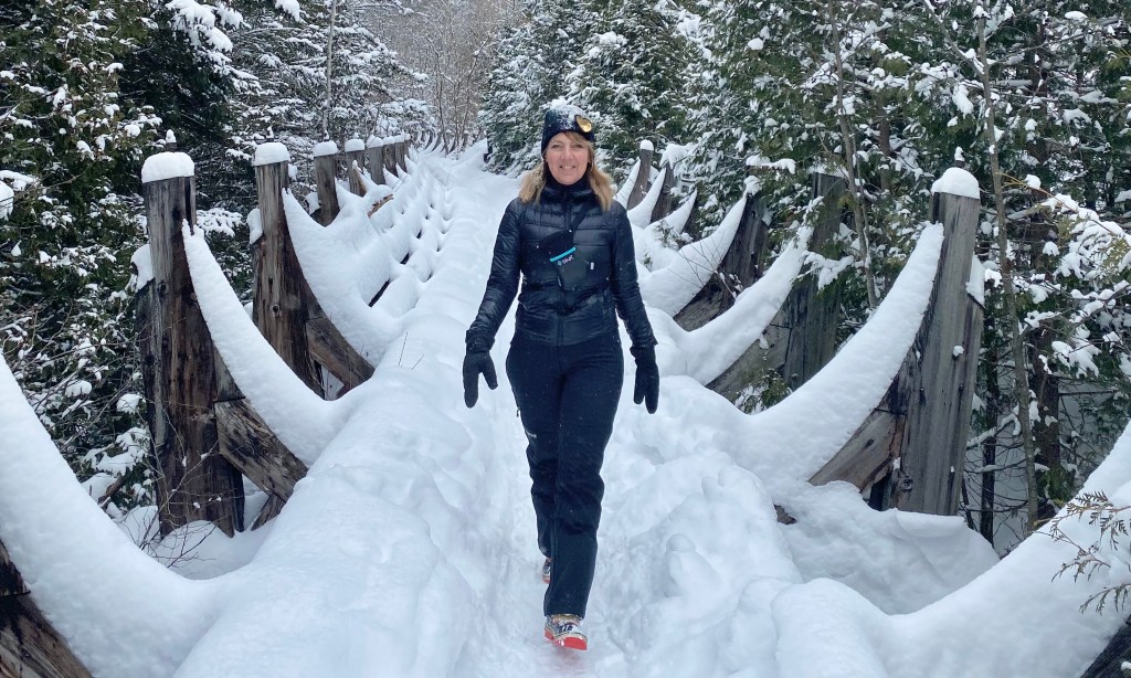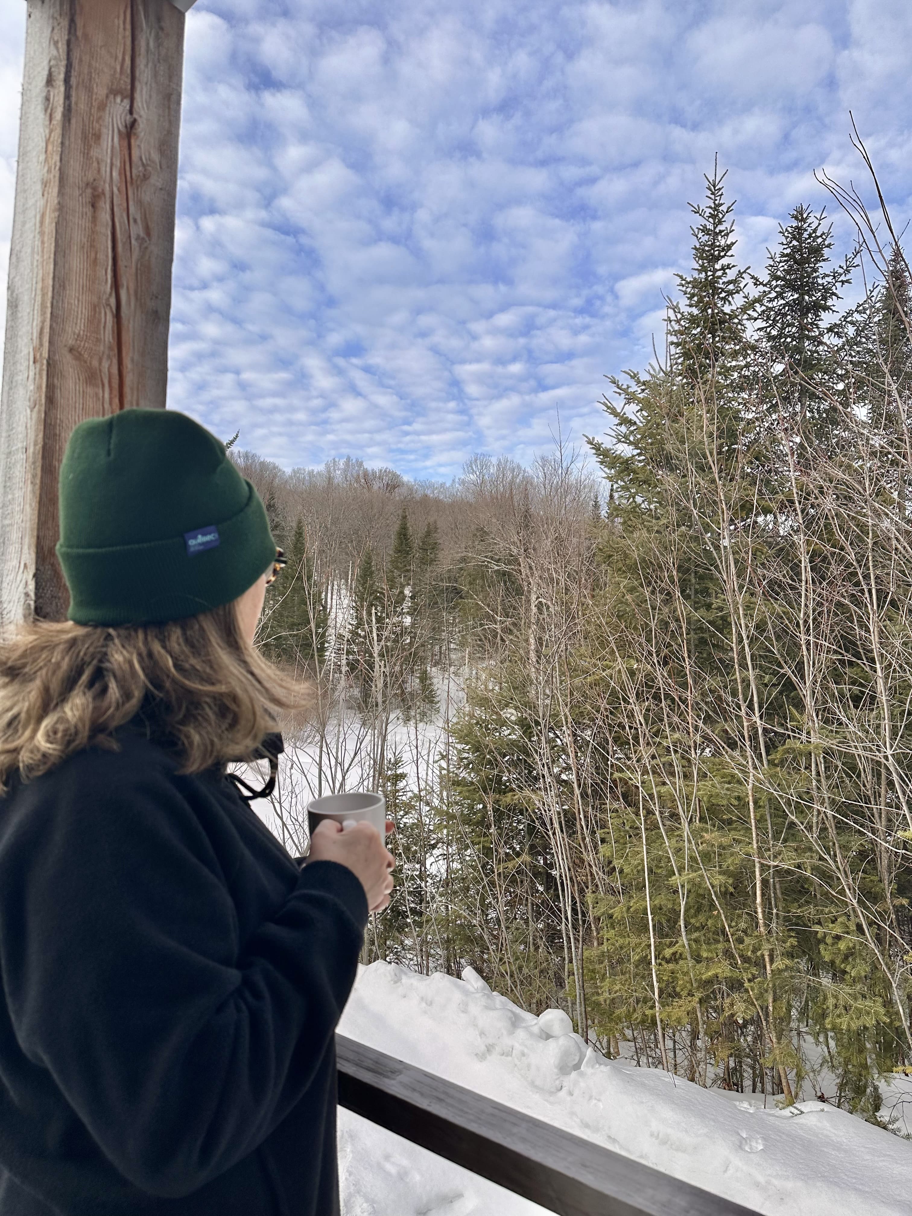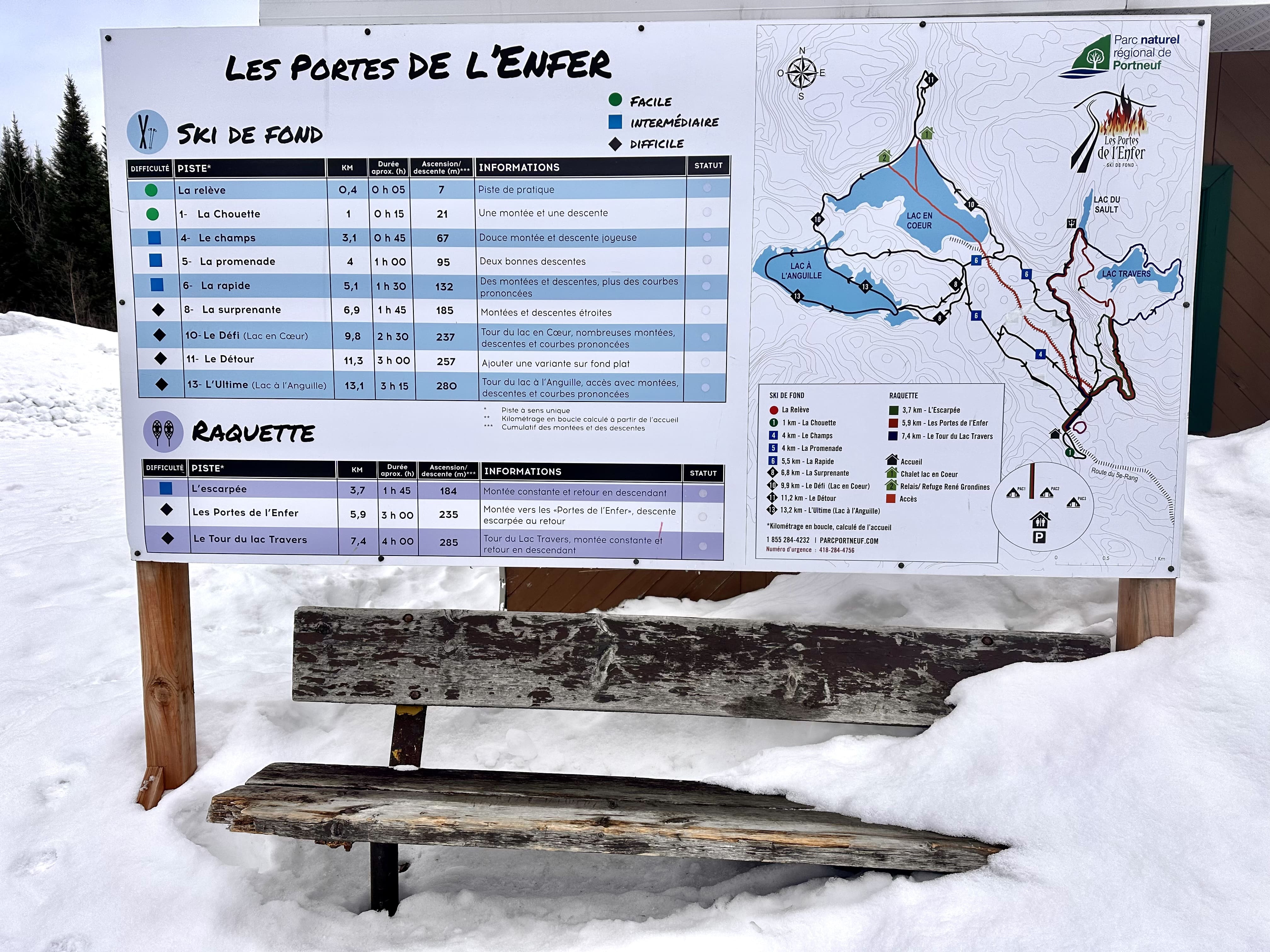 Le lendemain, un peu plus loin, j’ai chaussé mes raquettes pour explorer le secteur des Portes de l’Enfer. Ici le parc naturel régional de Portneuf propose trois boucles en forêt, dont une de 3,7 km offrant une jolie vue depuis un belvédère. Un bon mix entre effort et contemplation!