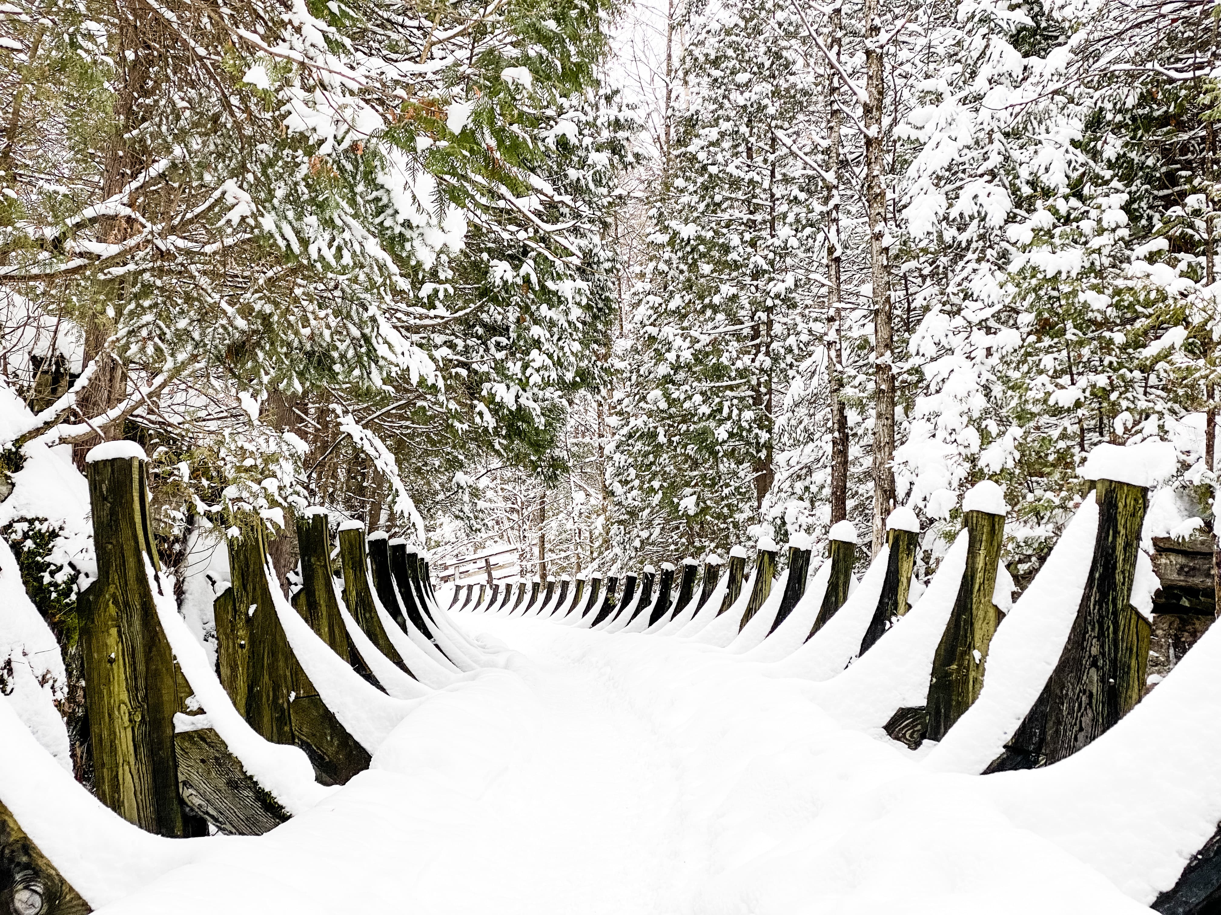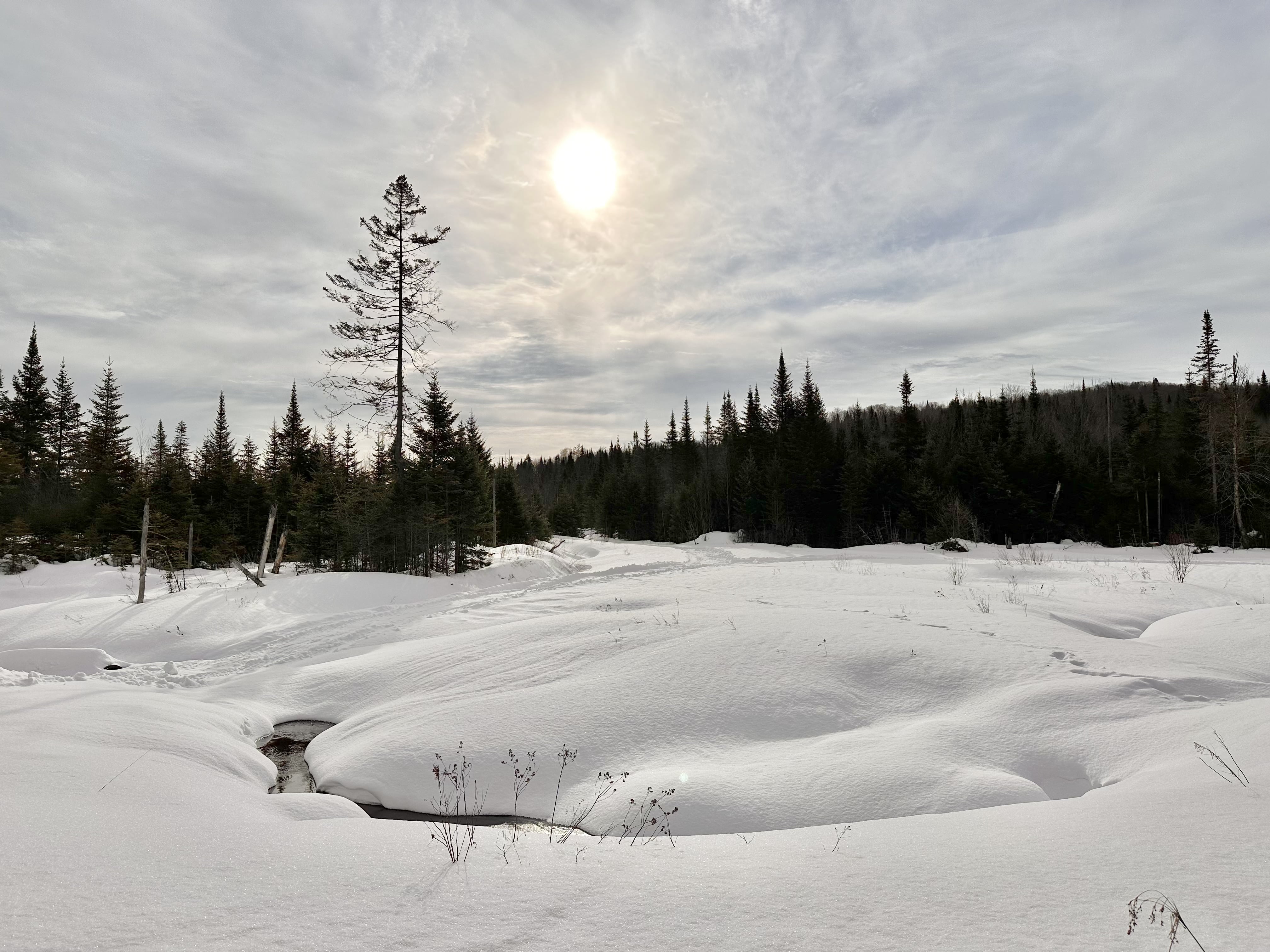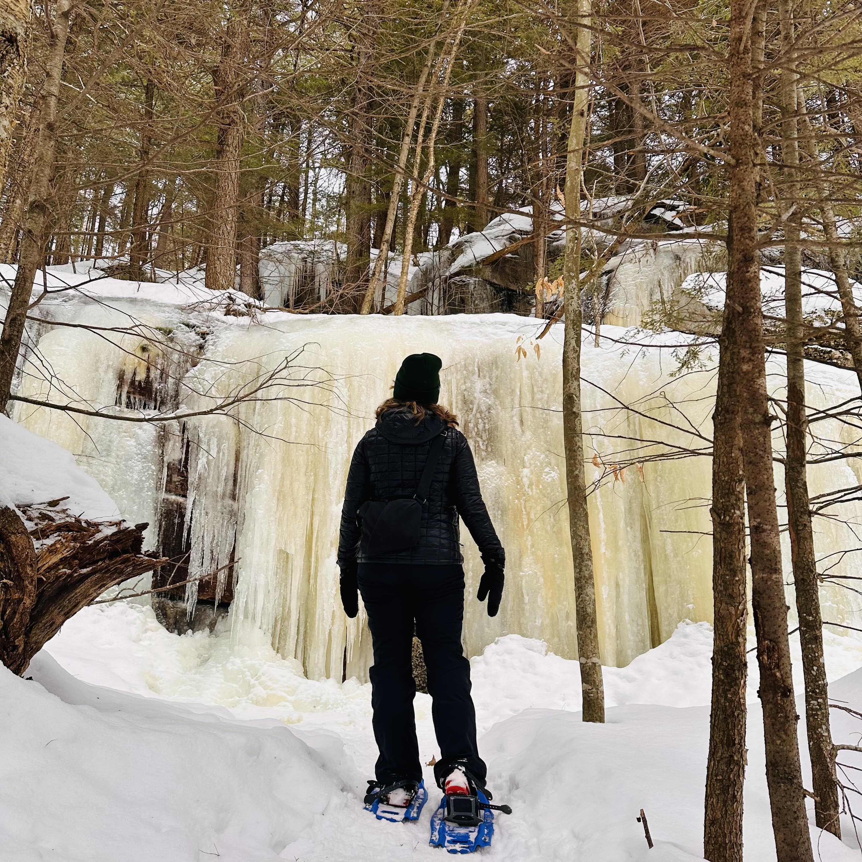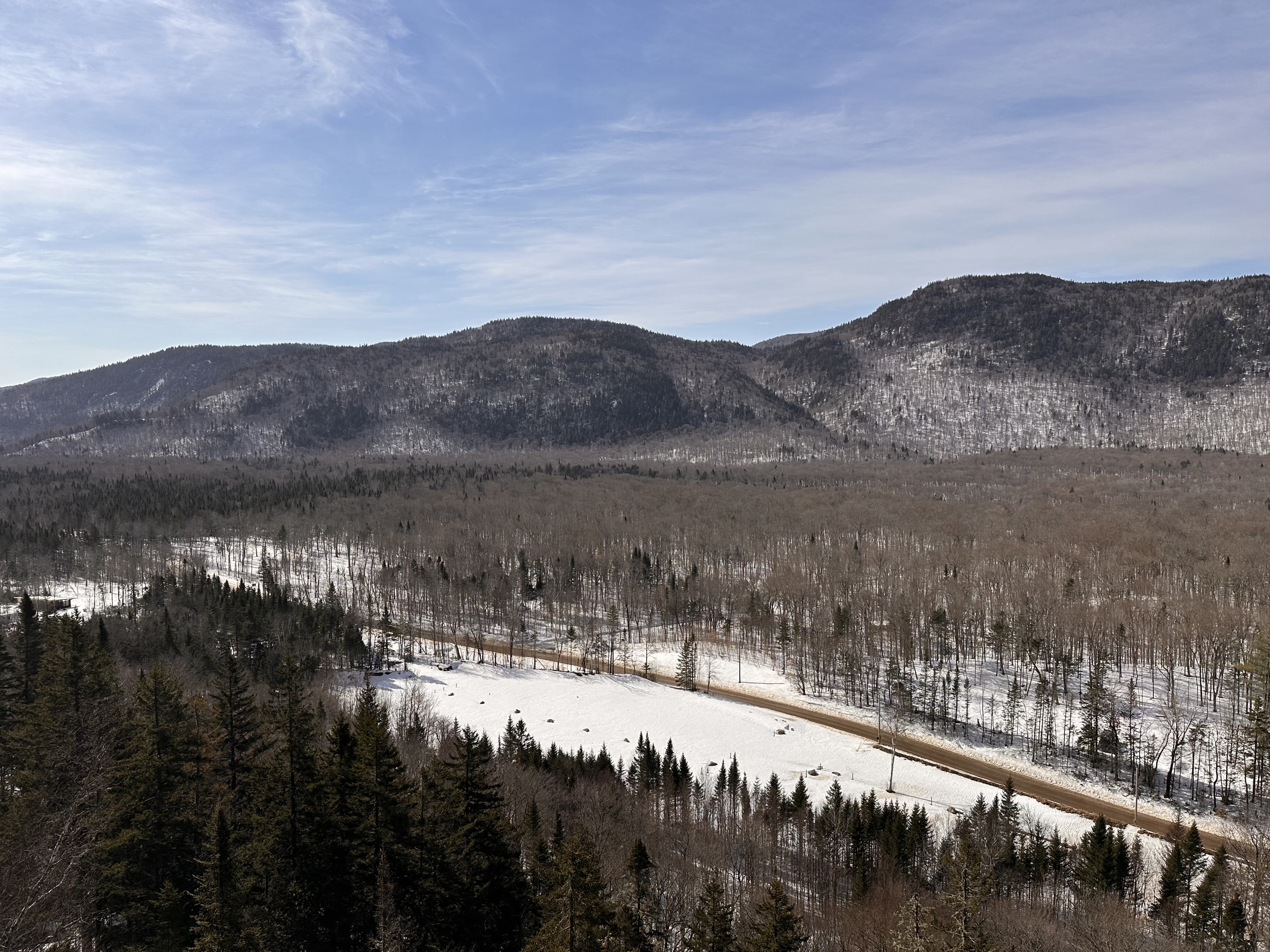 Le lendemain, un peu plus loin, j’ai chaussé mes raquettes pour explorer le secteur des Portes de l’Enfer. Ici le parc naturel régional de Portneuf propose trois boucles en forêt, dont une de 3,7 km offrant une jolie vue depuis un belvédère. Un bon mix entre effort et contemplation!