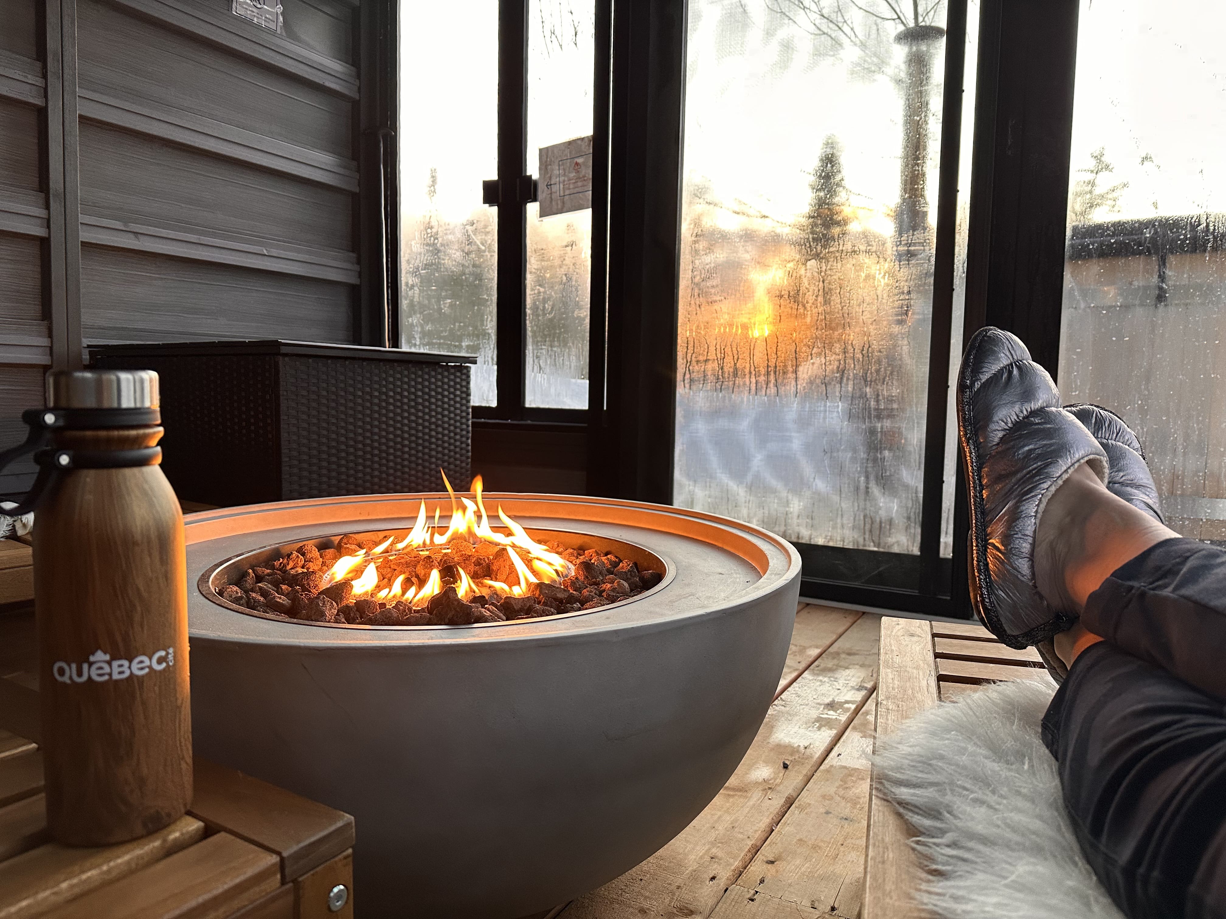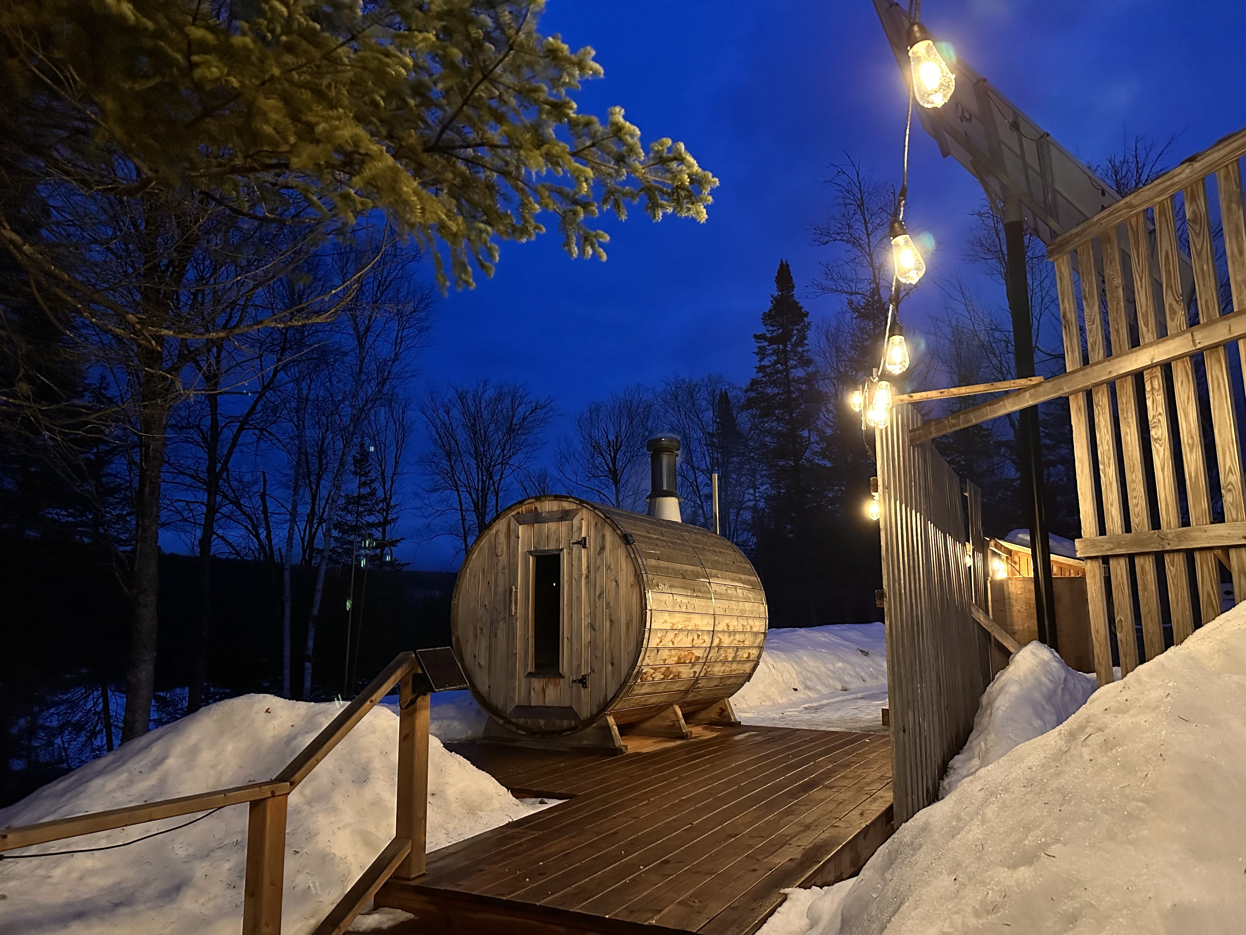 J’ai eu la chance de profiter de l’expérience thermale offerte sur place : un sauna en pleine forêt, un bain nordique avec une vue imprenable sur le lac gelé, et cette impression d’être seule au monde. Un vrai ressourcement, où l’on prend enfin le temps de respirer, de déconnecter, et de se laisser bercer par la magie du lieu.
