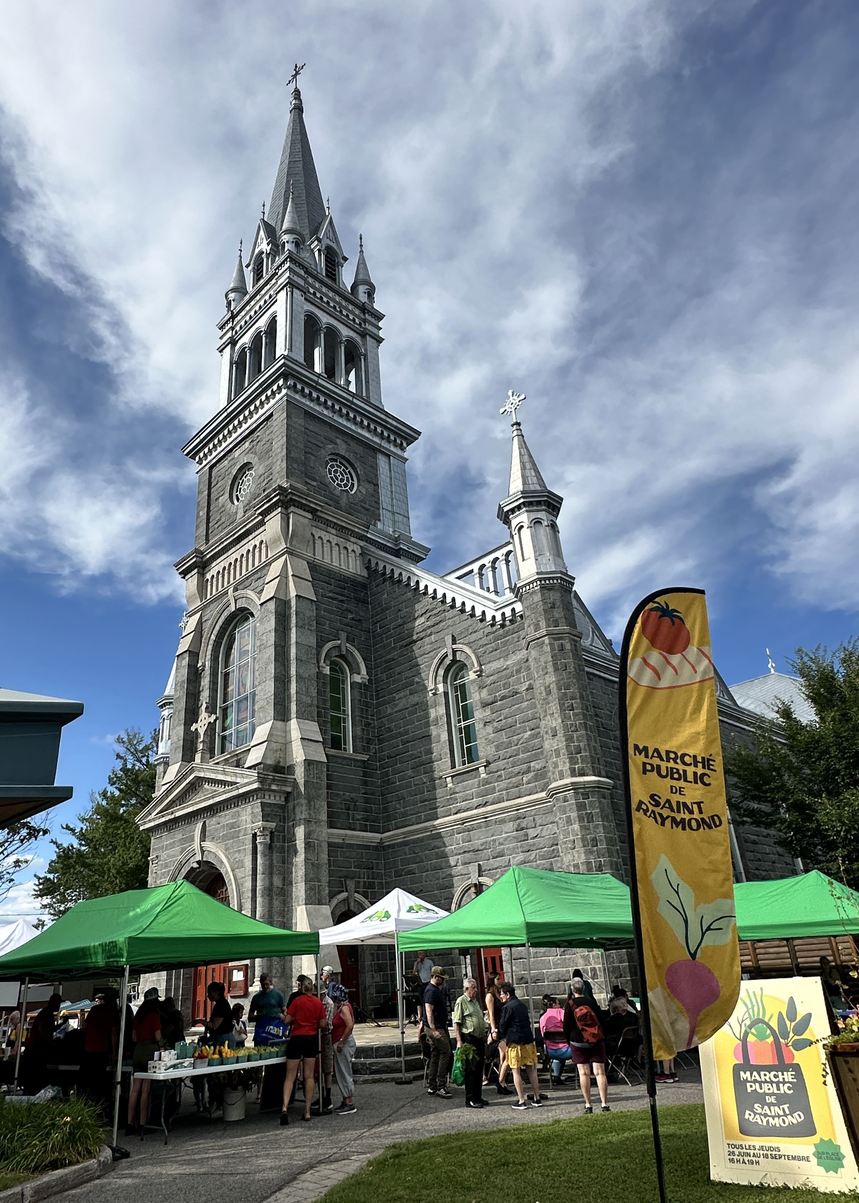 C’est en plein cœur de Saint-Raymond, au pied de l’église, que le marché public de Saint-Raymond bat son plein chaque jeudi de 16 h à 19 h. Cette véritable fête hebdomadaire accueille une vingtaine d’exposants passionnés, des produits locaux frais, des dégustations, un chansonnier et des artisans de la région. Voilà une belle façon de vivre la culture locale, en flânant entre les étals colorés et l’église patrimoniale qui veille sur la place.