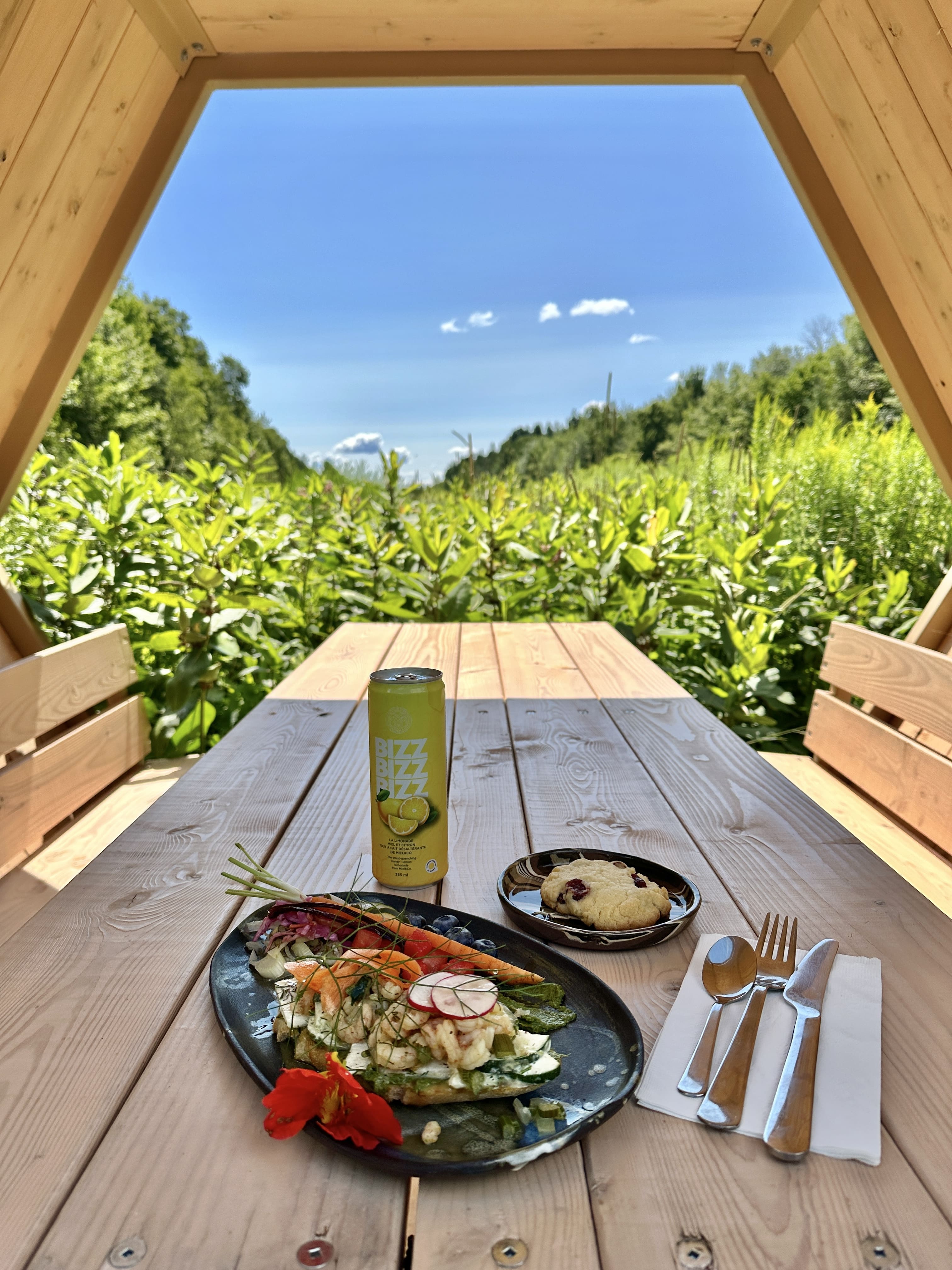 Miel&Co, à Portneuf, m’a complètement séduite. On y visite la jolie boutique où on peut observer une ruche en action, on admire les œuvres du chef-potier Patrick Roy tout en dégustant les mets, et surtout, oui, on se régale de plats fins servis au bistro l’Alvéole. C’est un lieu où l’on ralentit, où l’on goûte, où l’on apprend — un doux moment suspendu.