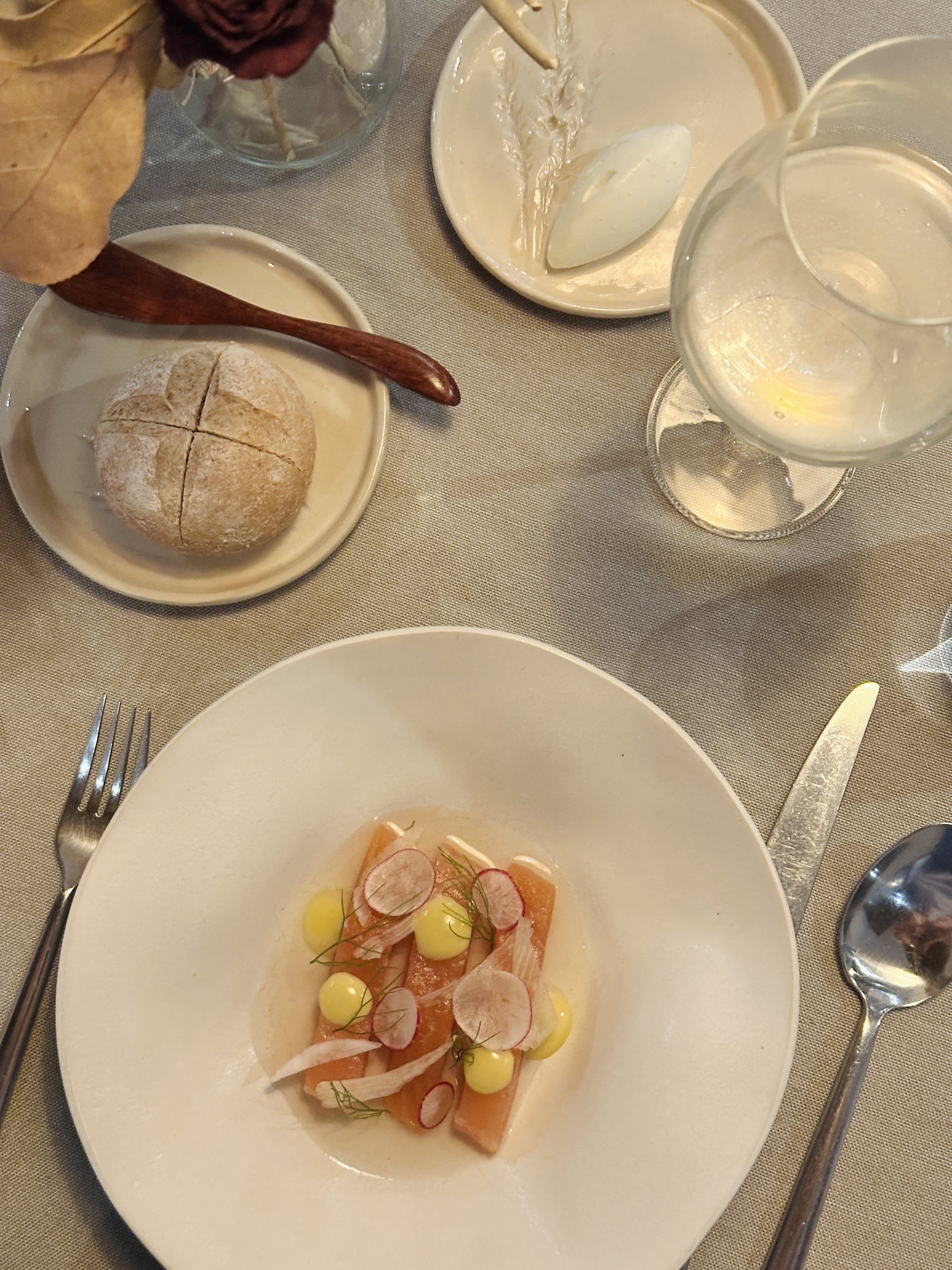 Myranel, à Deschambault, est sans conteste une des plus belles expériences culinaires de mon été. Dans une maison centenaire au charme feutré, chaque plat est une œuvre d’art, chaque bouchée un frémissement des papilles. J’y ai vécu un voyage sensoriel sans alcool, avec des accords d’infusions au chaga et érable, de camerises ou de thé du Labrador à la cardamome. Un menu inspiré, soigné, vibrant.